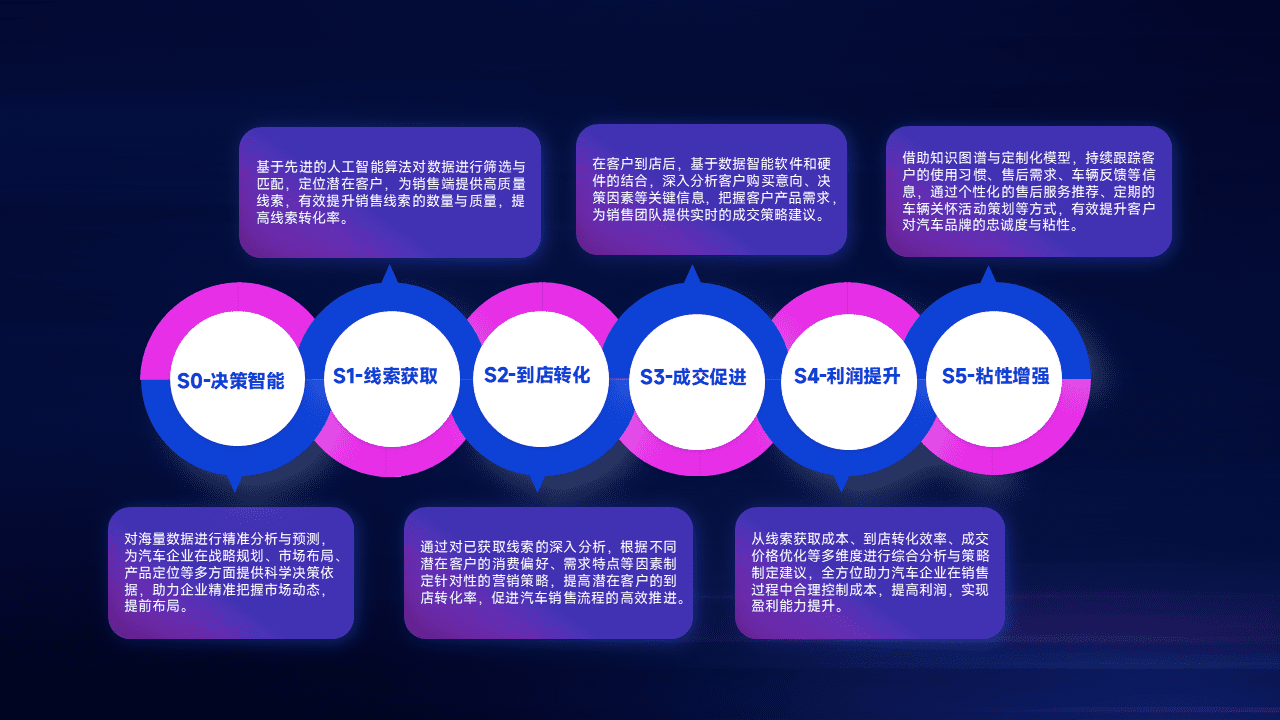 通过拓宽潜在客户来源、、优化线索分配并提高到店转化率,,,,以增强销售效率。。。同时,,利用线索数据不断优化分析模型,,,,有效提升转化率,,扩大营销影响力。。。